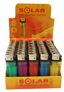 Solar Disposable Cigarette Lighters - 50ct Counter Display Wholesale